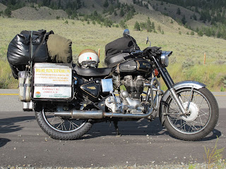 Sein aktuelles Modell: Enfield Bullet 500! Brachiale 28 Viertakt-PS und technischer Stand etwa 1960. Made in India.